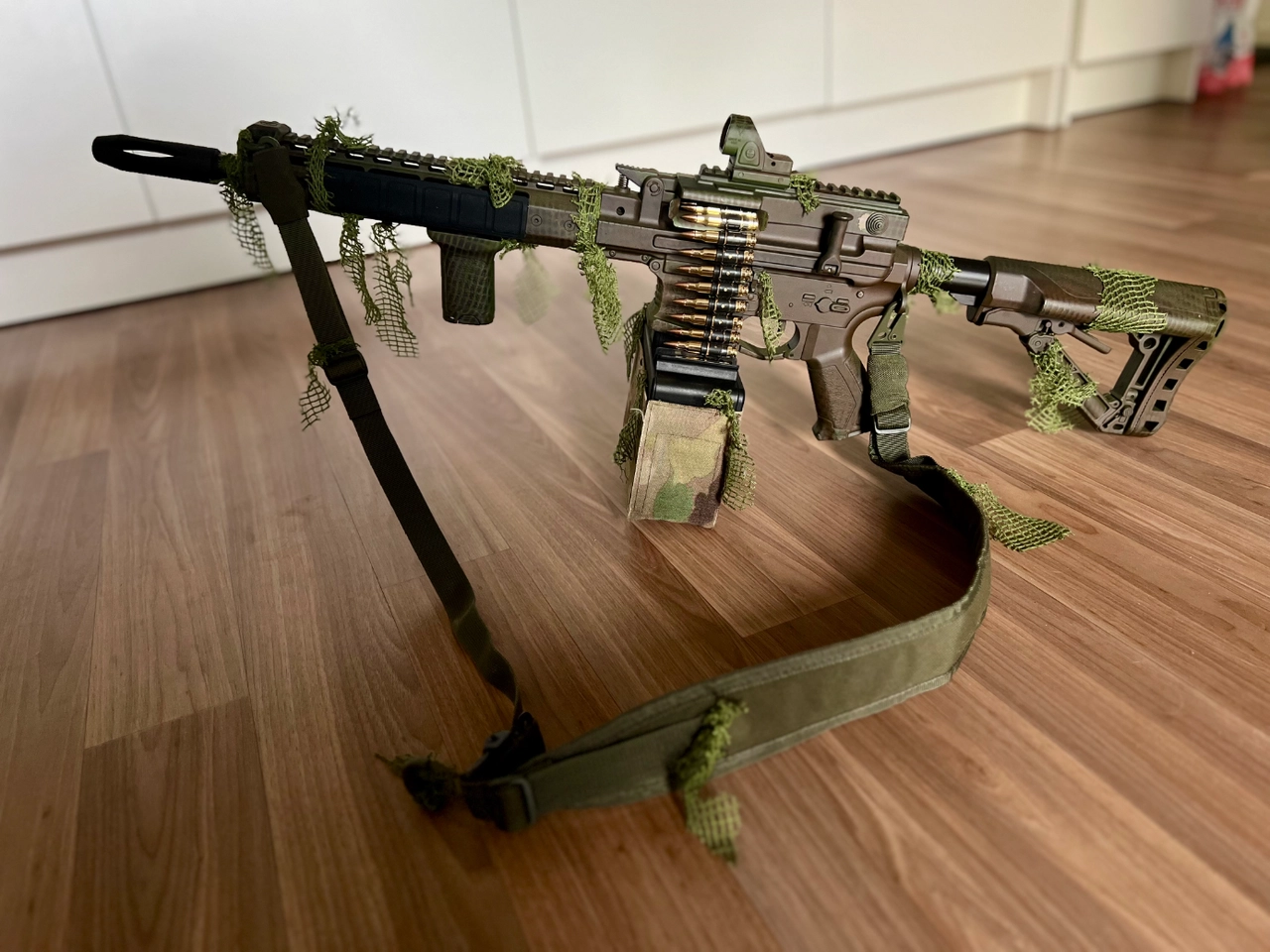 En externe installation d’un garde main Ares Octarms 10" avec paintjob sur toute la réplique.