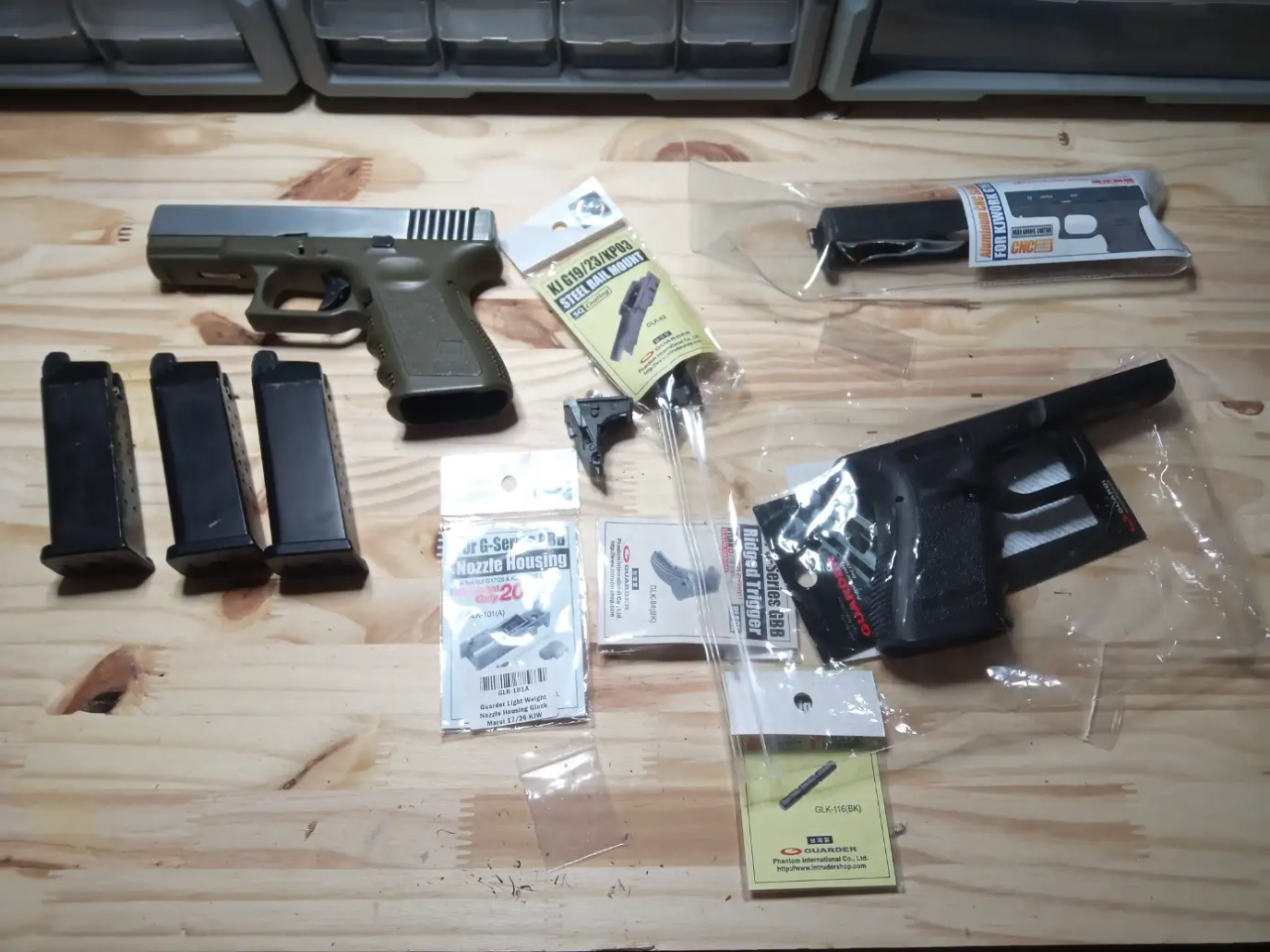 Ensemble de pièces Guarder neuves pour le convertir en Glock 19 Gen3 noir: culasse, carcasse, bloc détente acier, axes, bedding acier, BBH...