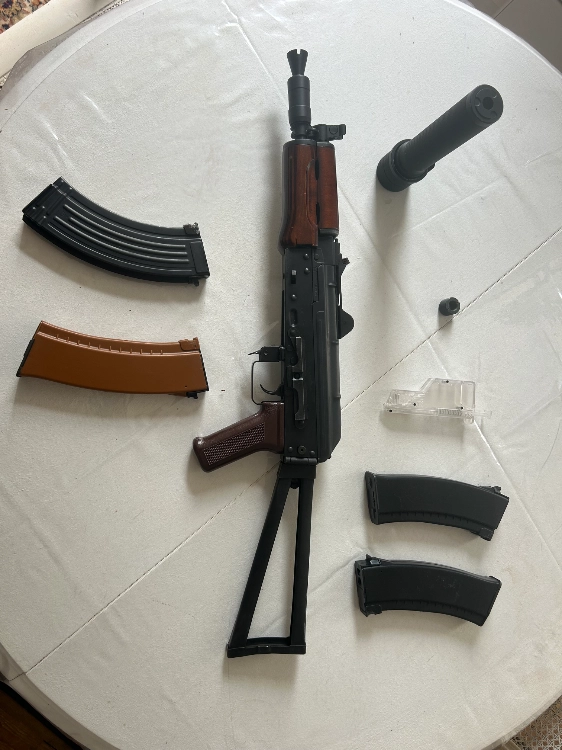 Bonjour, je vends une a ak74su LCT, en très bon état qui n'a jamais fait de partie et qui a tiré 4000 billesavec un silencieux de la marque 5KU ainsi qu'un chargeur acier et le chargeur d'origine et deux chargeurs LCT défaillant vendu avec la boîte et son adaptateur 14 mm d'origine