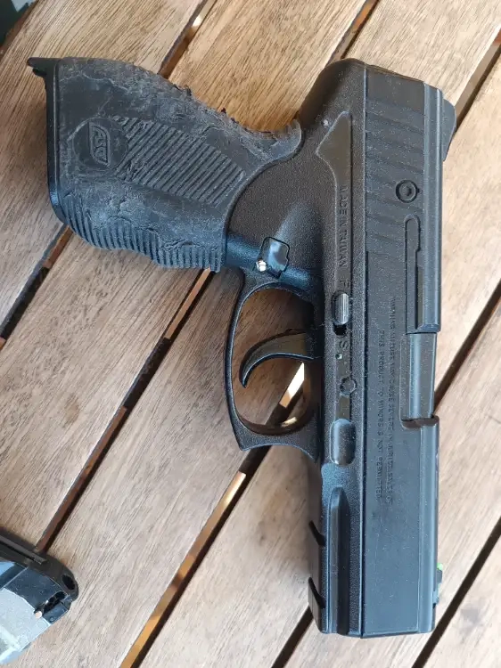 Le grip de la poignée à du vécu mais ne gêne en rien le fonctionnement du pistolet.
