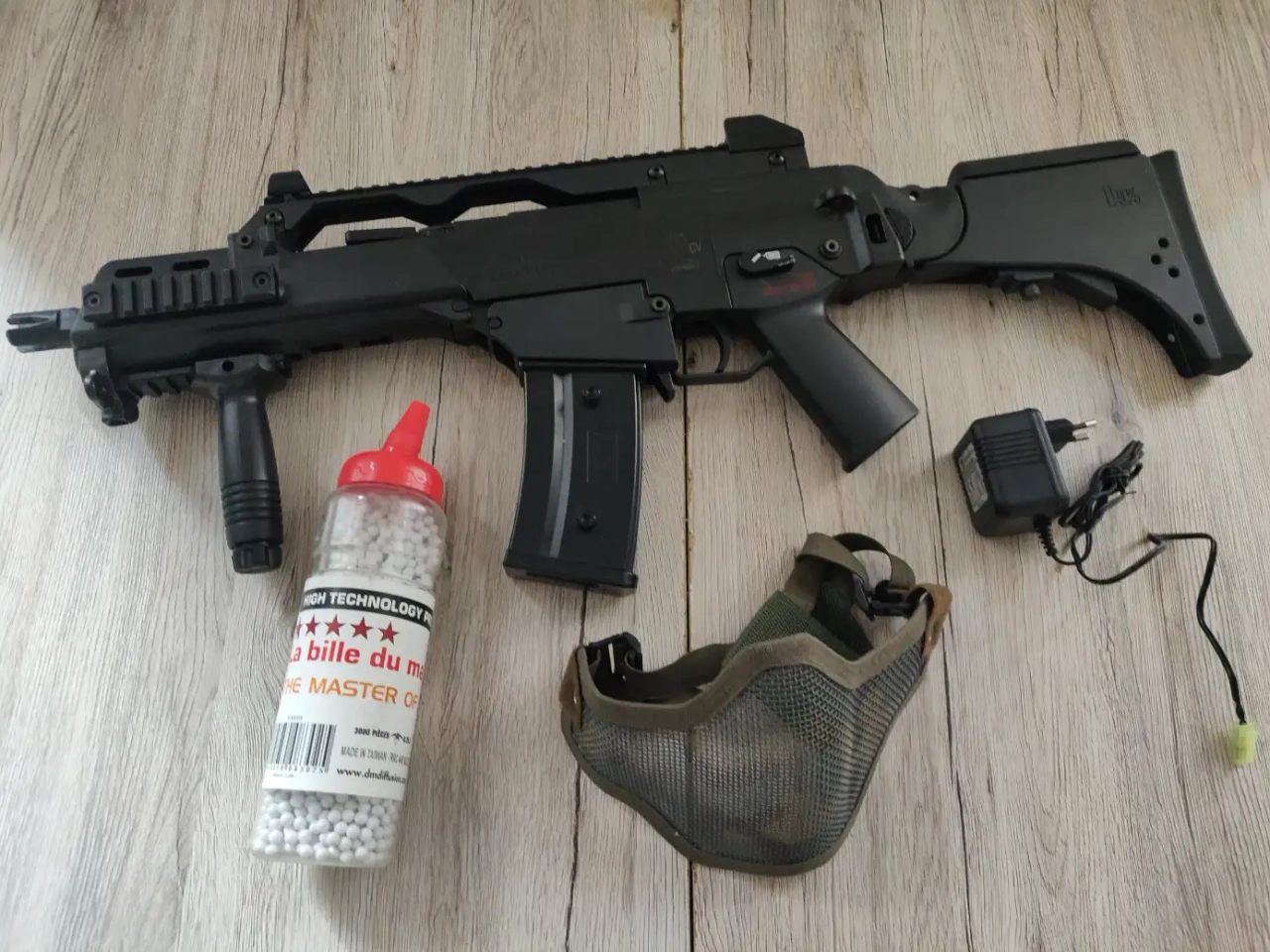 Vends réplique airsoft G36CV avec batterie, chargeur de batterie, masque et ~2000 BBs bio.