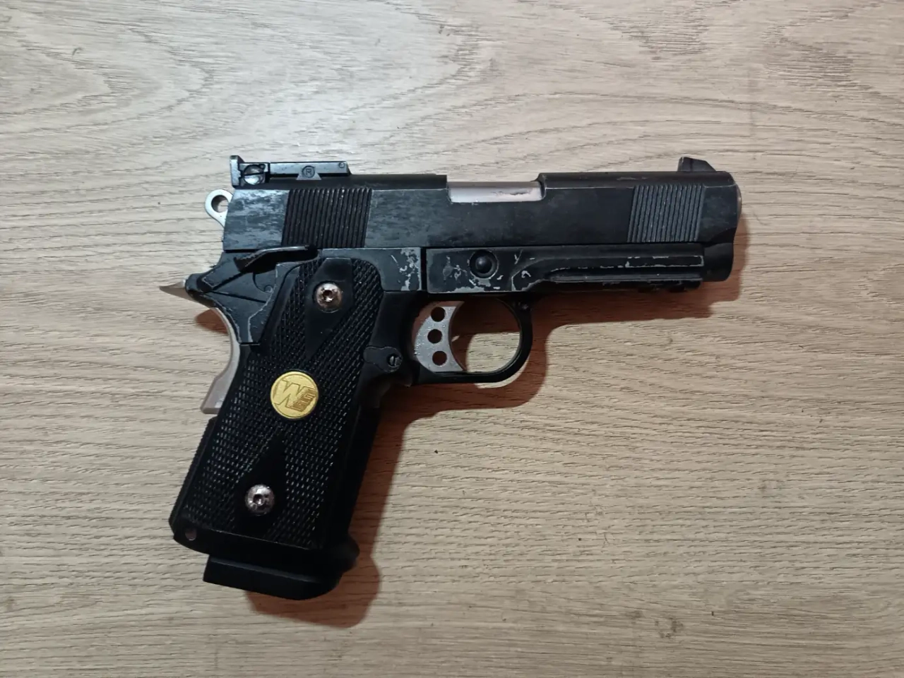 Bonjour à tous ! Je vends ici un baby hi capa we qui tourne comme une horloge ! La réplique a un corps en métal avec un canon court, fonctionne tip top !