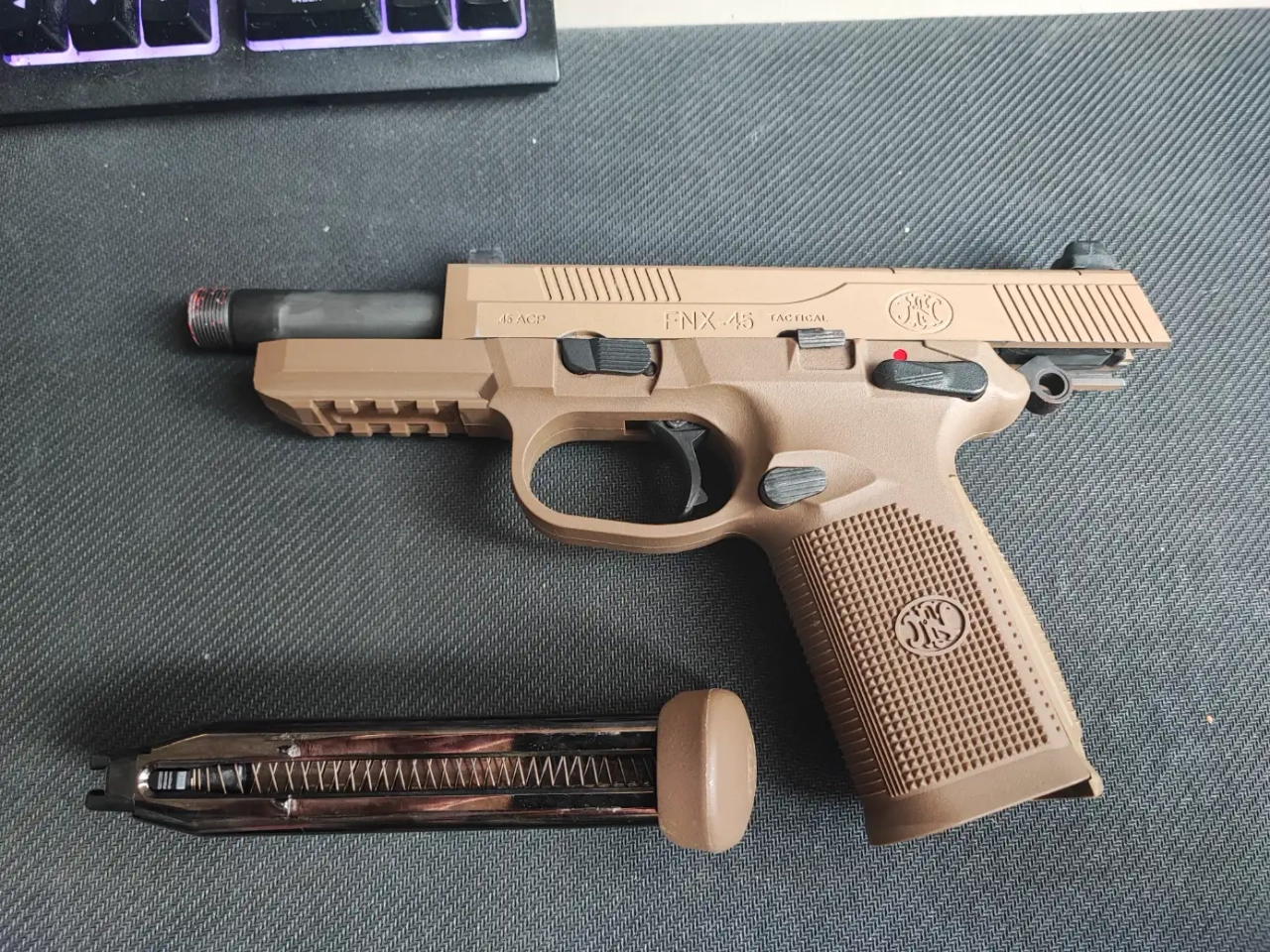 Vends FNX-45 Tactical Cybergun coloris Tan avec marquages officiels.