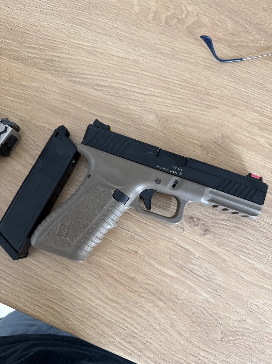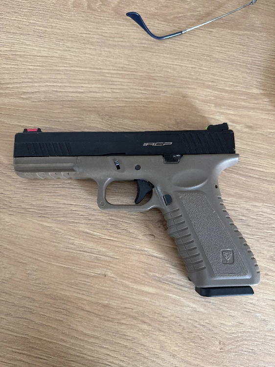 Bonjour, je vends mon glock ACP avec un chargeur gaz noir fonctionne parfaitement 50€ non négociable. Paiement via lbc ou vinted possible