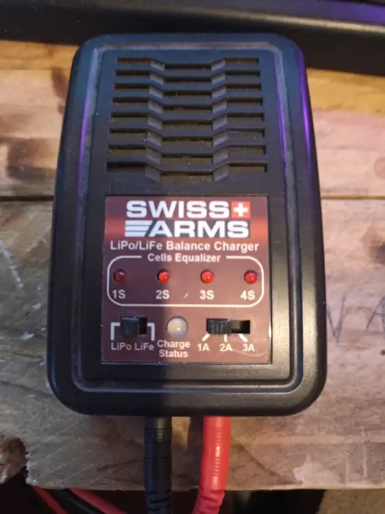 je vend ce chargeur de swiss arm pour airsoft max batterie que on peut mettre dessus 4s de 1 a 3 ampere variable selon vos chois de vitesse de charge lipo ou life