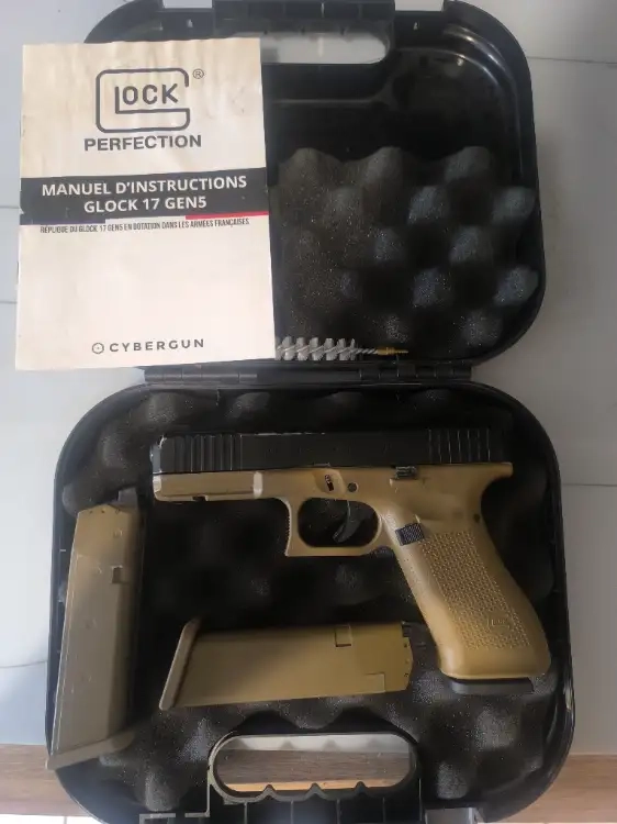 Bonjour je vends mon glock Gen 5 en dotation de l'armée française il a tourné uniquement au gaz rouge et noir révision effectué ras aucun chargeur fuit vendue avec deux chargeur supplémentaires et avec sa malette glock