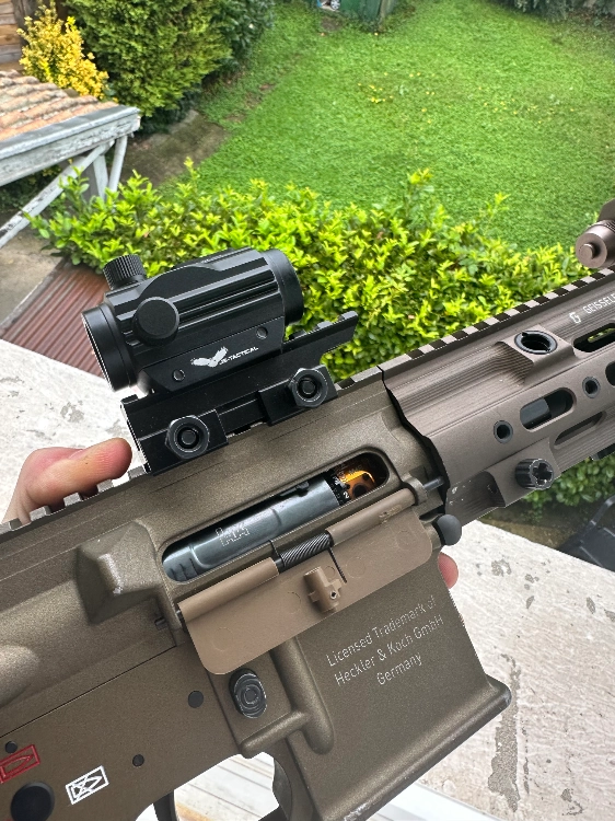 Je fournis avec une sangle pour l’accrocher, 5 chargeurs + un viseur lasers + un holographique + viseur point rouge + tracer + une case de 1 mètre pour la transporte.
