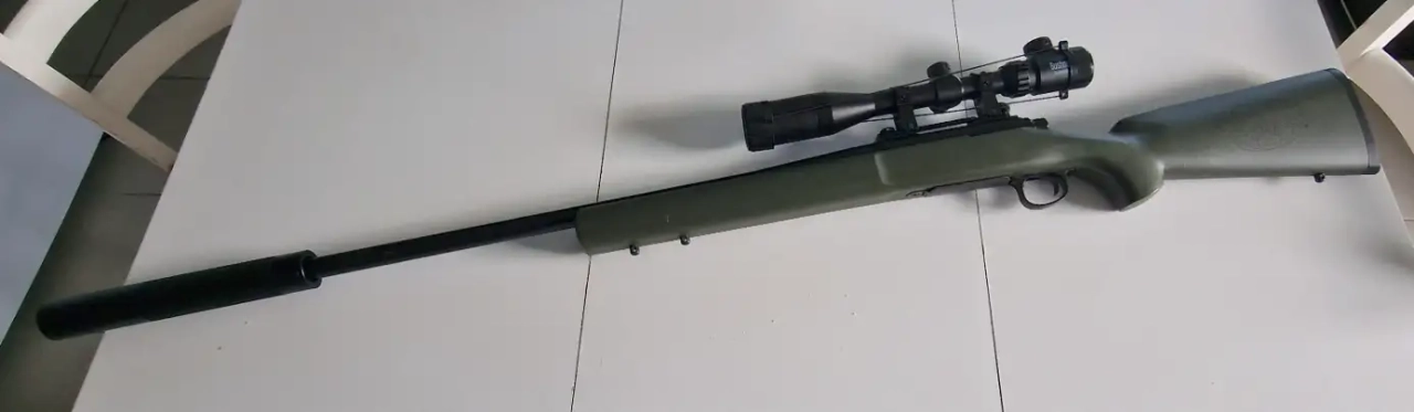Il est vendu avec une lunette Bushnell de chasse de haute qualité, pas besoin de galéré avec un tournevis pour le réglé. Egalement avec un silencieux. Tel que sur la photo.
