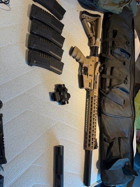 Elle a du mal à tourner, le moteur fonctionne mais le tir « rame ». Je la vend dans l’état avec 5midcap 140coups, un viseur, une sacoche et deux silencieux.