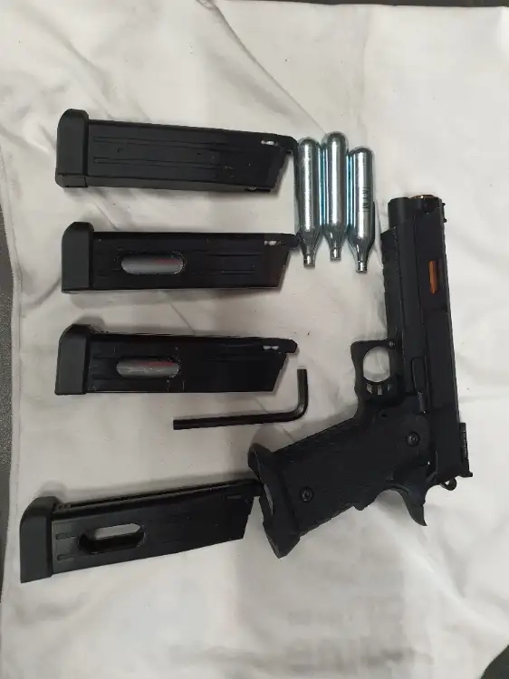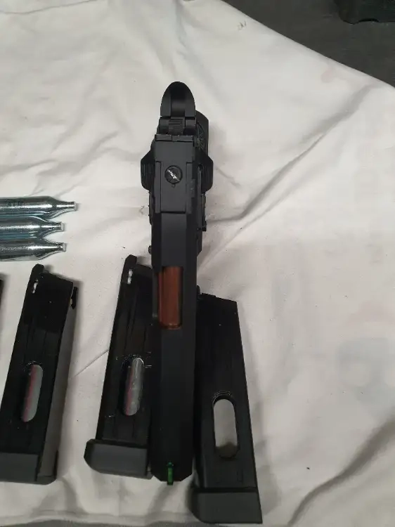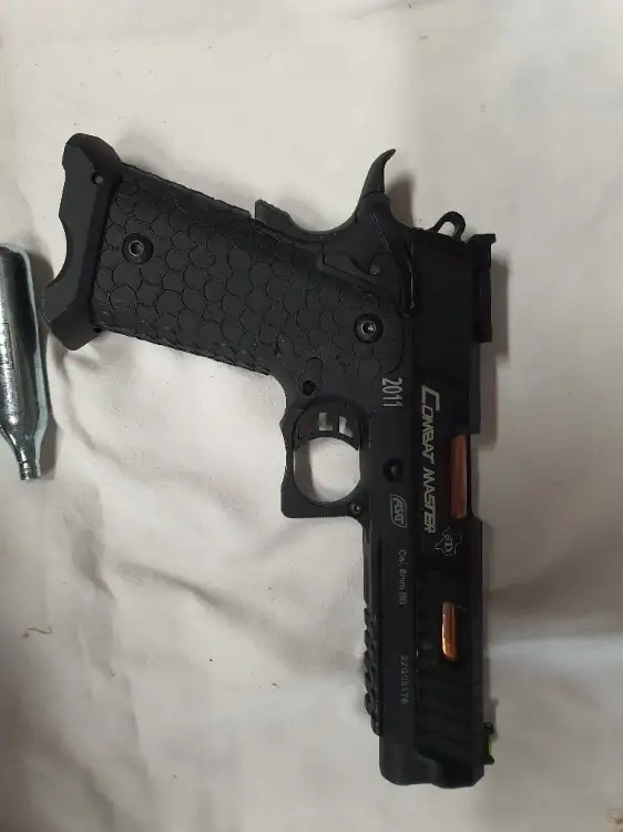 un hicapa EMG/TTI 2011 Combat Master Standard vendu avec sont chargeur co2 , + 2 chargeur co2 supplémentaire + 1 chargeur gaz