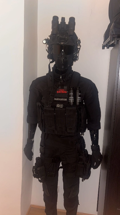 Ensemble commando full black ( pantalon veste , gilet par balle, casque avec lunette infrarouge,