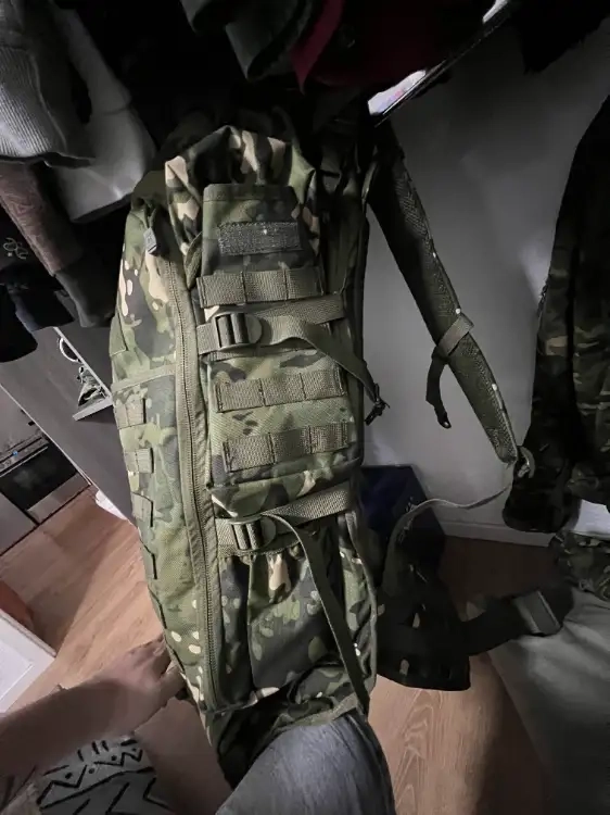 Je vend mon sac a dos d'airsoft 40L , Il y'a un emplacement de réplique longue au dos , deux poches taille bouteille sur le coté ,