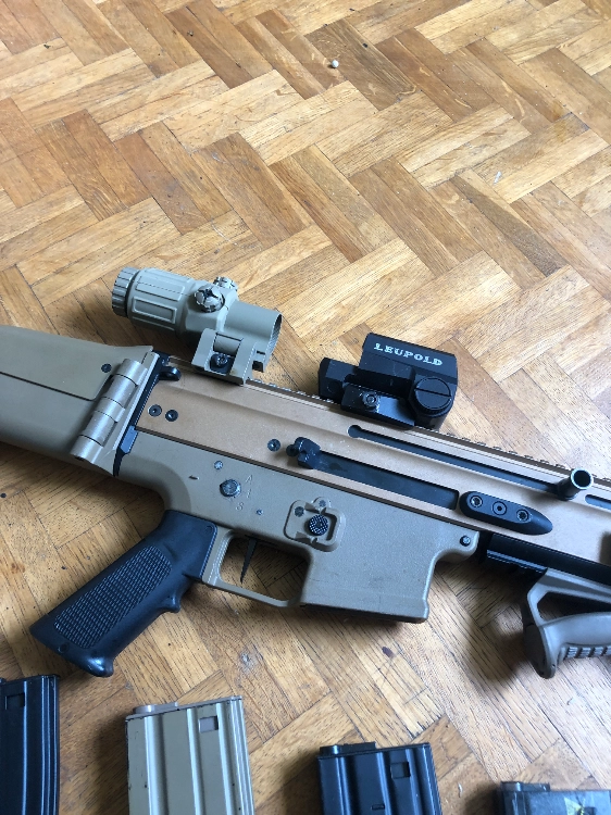 Bonjour, je vends mon Scar car je ne m’en sers plus, il a été entièrement révisé par un professionnel. Facture à l’appui, il dispose d’un traceur d’une lampe tactique d’un Red dot lespol ainsi qu’un magnifer il dispose également d’un mosfet titan le canon. Les engrenages tout a été changé et recalé par professionnel. Il est fourni avec six chargeurs, deux bb loader, chargeur Lipo deux batteries et lunettes