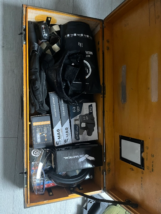 Le gilet tactique, les gants et lunettes ont été achetés d'occasion, le reste est neuf et n'a jamais servi.