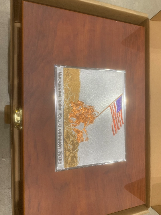 - Conditionné dans une boite en bois avec une plaque commémorative présente en interne