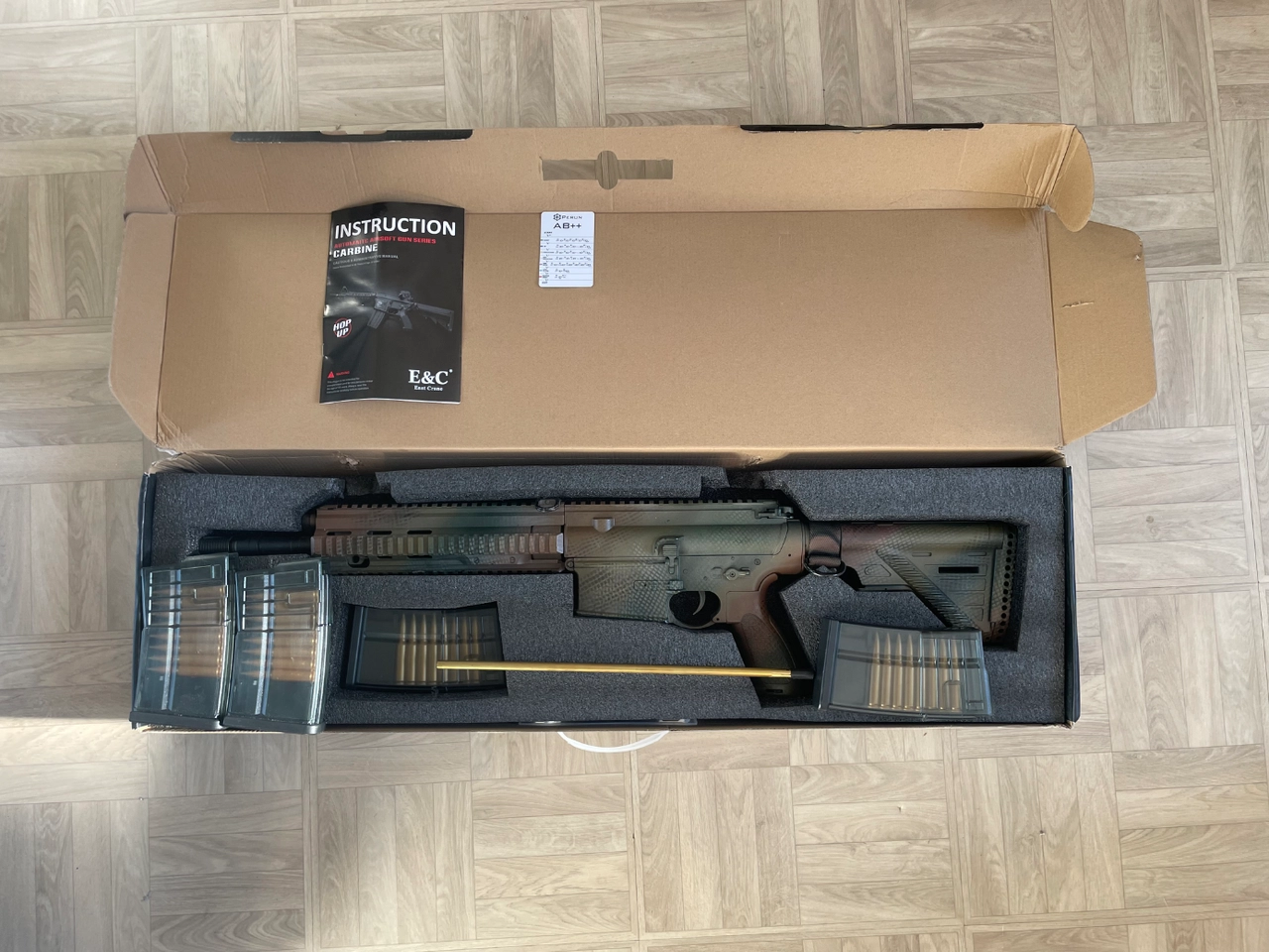 Bonjour je mets en vente mon HK 417 A2 E&C aeg full upgrade + paint job, je la vend car changement de projet.