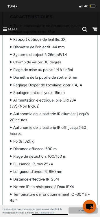 NVG numérique vendu avec son mount en métal et Wilcox en métal.