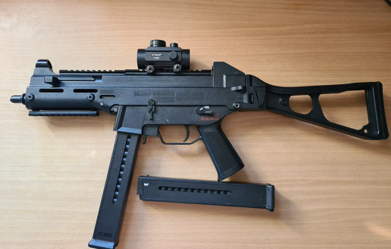 suite a un acheteur fantome je remets en vente mon UMP 45 UMAREX AEG en parfait etat,avec 2 chargeurs hi cap et batterie neuve et chargeur et viseur red dot point rouge et moteur neuf installé ATM HI TORQUE