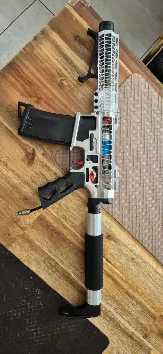 C'est un lanceur type Ar15 Equipé d'un Corp mancraft Superlight,