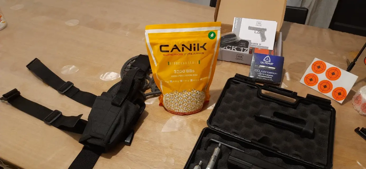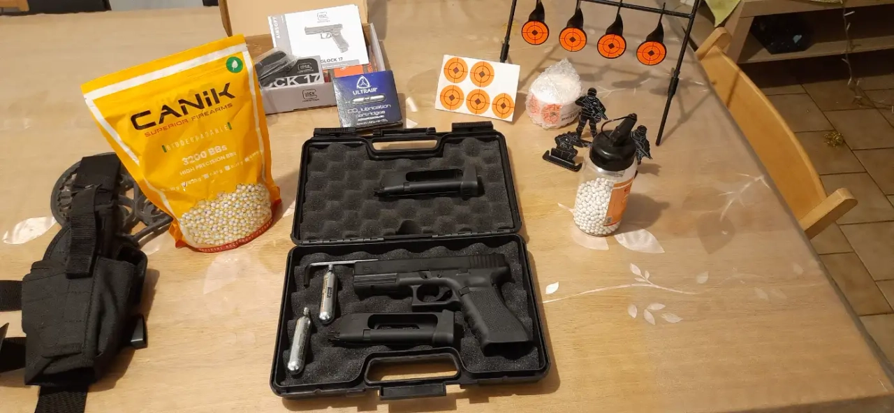 -Un Glock 17 de gen 4, à CO2, avec Blowback et shoot-up reglable.