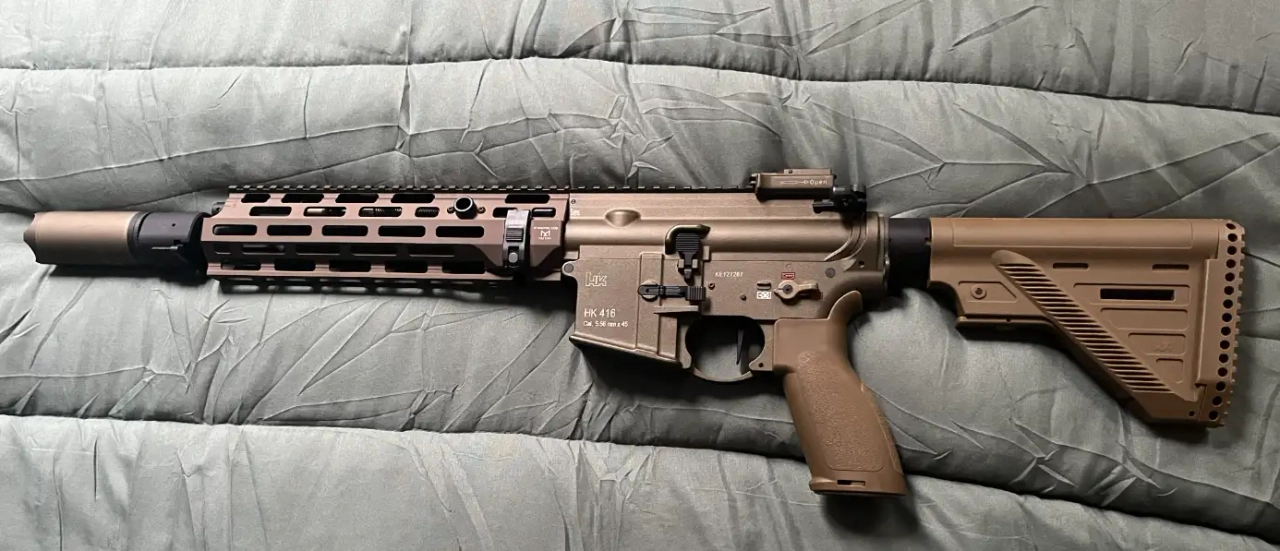 La réplique est vendu équipé du dernier garde main m-lock pour hk416 et de son silencieux qd B&T rotex V.