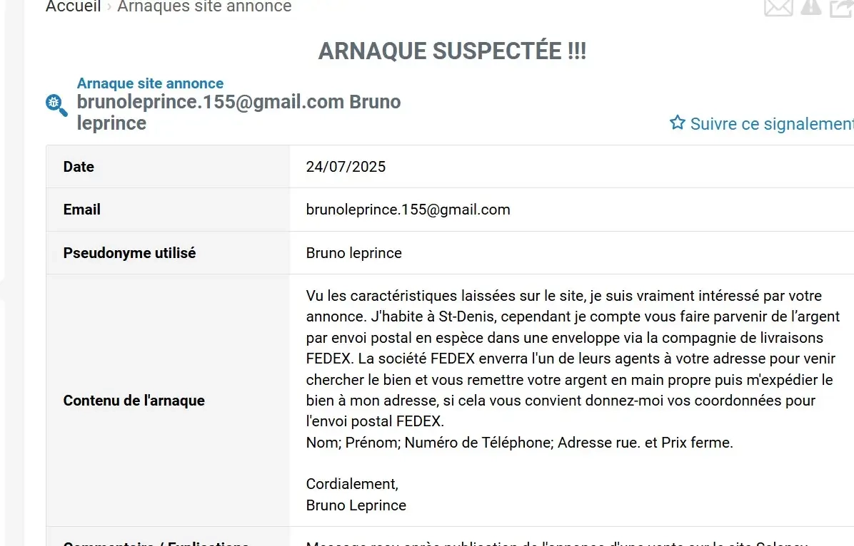 un type qui se faiut appeler LEPRINCE vous contacte et vous demande de le contacter parv email (il n utiise pas la messagerie du site )