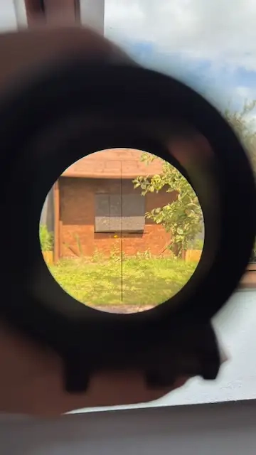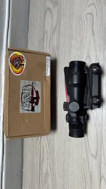 Reproduction d'une lunette type ACOG en 4x32 de la marque G&P ("TA31(A)"). Elle a quelques traces d'usure due à une utilisation normale.