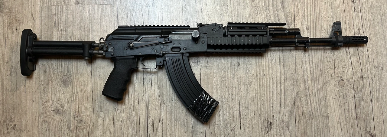 -AK Cyma, super robuste, ma réplique principale à l’époque, garde main RIS, crosse russe LCT, poignée ergo Cyma et dust cover avec Rail, un mid cap fourni avec: 100€