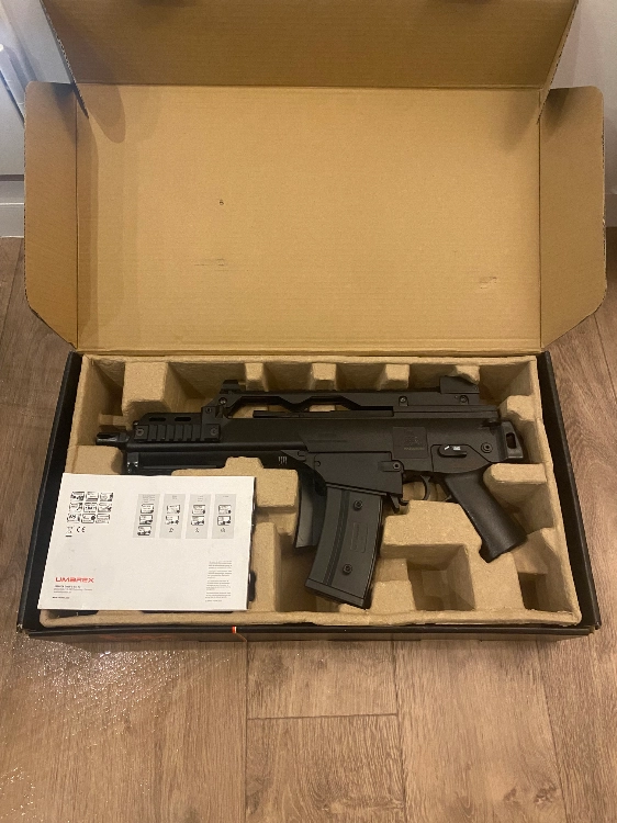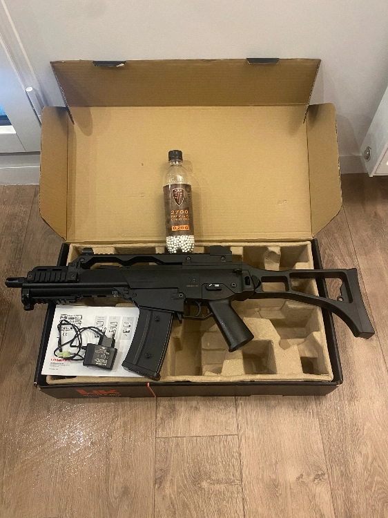 Je vends une réplique airsoft électrique (AEG) HK G36C, sous licence Heckler & Koch, fabriquée par Umarex.