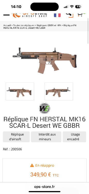 Bonjour je vend la SCAR L Gbbr elle est en très bon état aucun problème toujours bien entretenu
