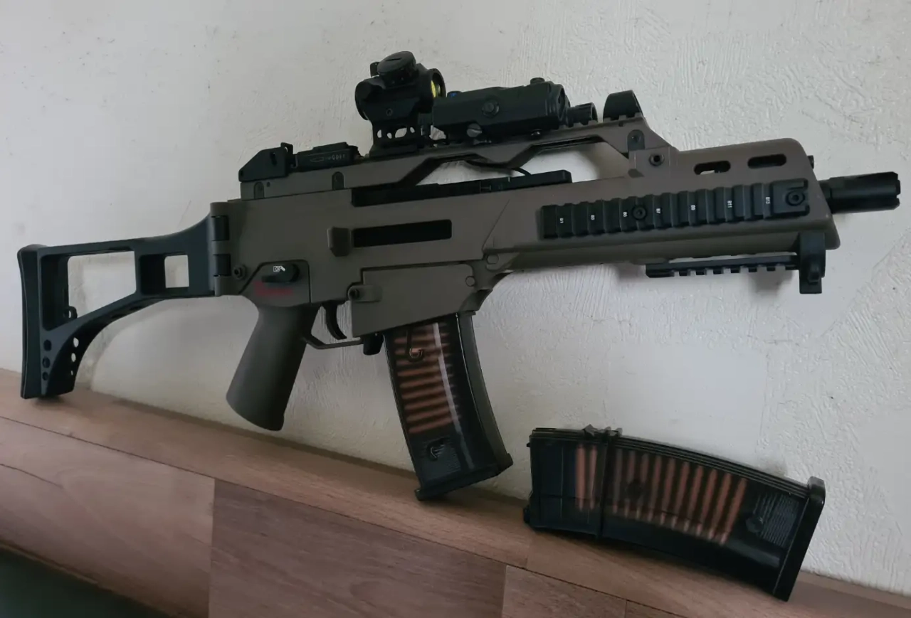 je met en vente mon G 36 GBBR ARMY ARMAMENT,,en parfait etat,avec 1 red dot point rouge et un boitier an peq avec lampe et laser integré fonctionnel et 2 chargeur gaz sans fuite dont un WE