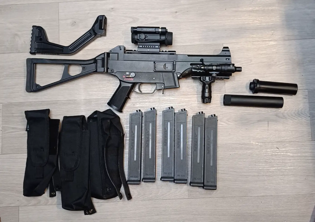 Vendu avec 6 chargeurs mid cap + 1 high cap ( qui n'est pas sur la photo)