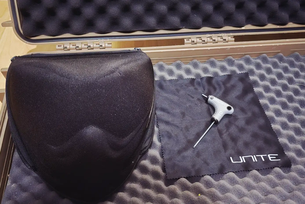 Vendu avec la microfibre Unite, la clé de réglage du masque et la coque de transport.