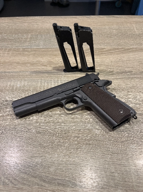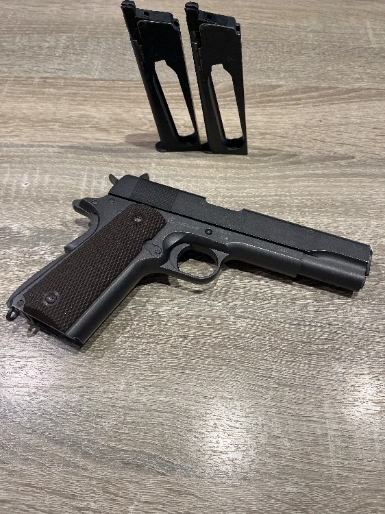 Vend 1911 colt au co2 avec 2 chargeurs mais il y en a un ou il faut changer les joints car il fuit sinon il est en tres bonne etat je fournis des cartouches de co2 avec