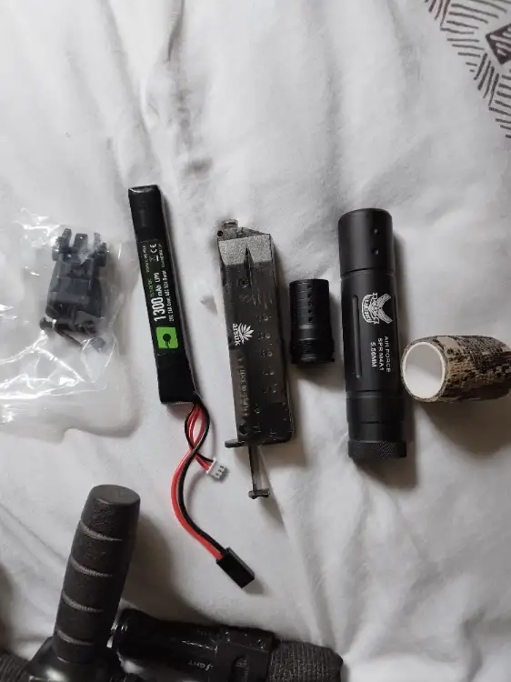 L'airsoft n'est pas mon domaine veuillez m'excuser d'avance si je ne connais pas les termes, tout est sur les photos je ne connais pas tout les accessoires que je possède je vous laisse voir par vous même ;)