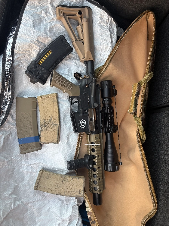 Avec il y a un silencieux, une vraie crosse magoul str, une lunette anti snipe et 4 chargeurs mid-cap, vous pouvez venir l’essayer mais ramener votre batterie car j’en ai plus.