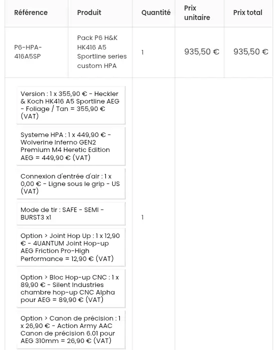 Pack P6 H&K HK416 A5 Sportline series custom HPA