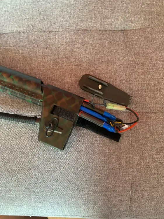 Il s’agit là d’un PP19 Bizon de la marque Golden Eagle. Kit impression 3D fait sur mesure par mes soins en majeure partie, modification de la crosse et du tube de crosse pour passage de câble à l’arrière type M4. Pas besoin de démonter le capot supérieur pour accéder à la batterie. Rail picatinny supérieur sur tout le capot afin de pouvoir monter n’importe quel organe de visée.