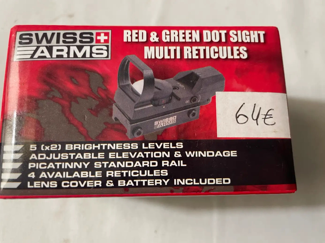 red dot neuve avec pile, mode d'emploi, clés de réglage et cache, achetée 64€.