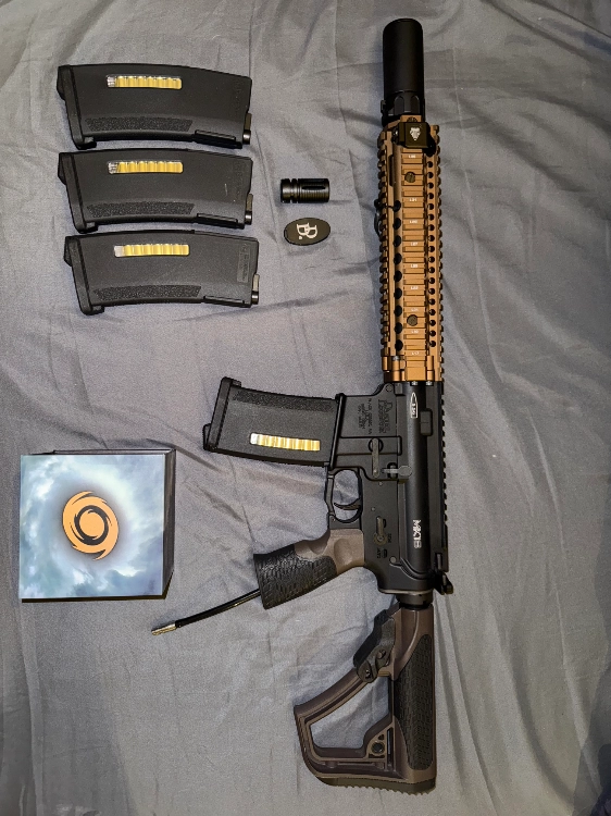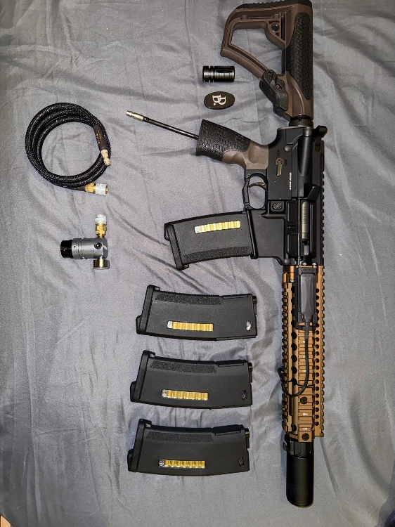 Vend Wolverine Airsoft MTW Daniel Defense MK18 (HPa) avec accessoires Storm Cat.5 + 6 chargeurs PST EPM + frein bouche SureFire en plus de l'origine Daniel Défense + 2 batteries ASG (Li-Po 7.4V 250mAh) + bouteille HPa 0,25L Carbon de Dye ARMOTECH avec Preset GUERILLA Air G2.