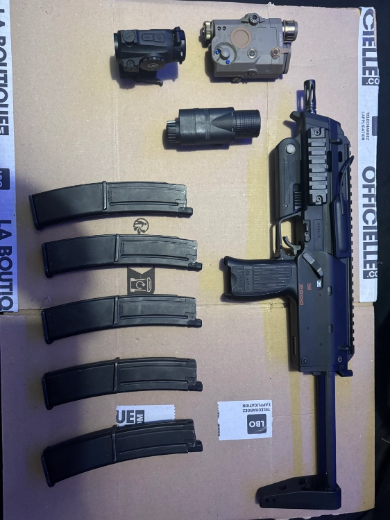 Je mais en vente ma réplique mp7 qui fonctionne au top avec c’est 5 chargeur dont 3 a changer les joints de valve car fuite avec viseur point rouge boîtier peq et lampe