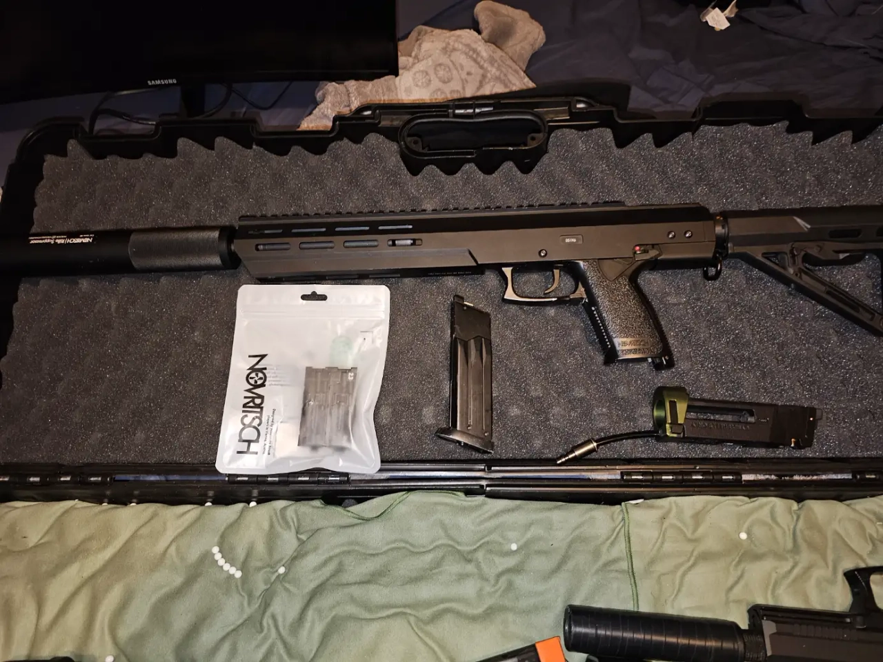 Ssx303 avec silencieux novritsch,3 nozzle de puissances différentes et 1 chargeur