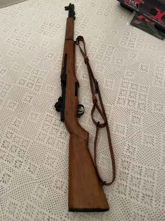 Garand A&K , état neuf, boite d'origine, bretelle cuir, crosse vrai bois vieilli, utilisé une fois pour test au moment de l'achat neuf.