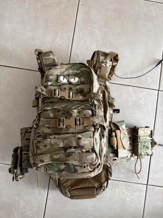 Gilet templar gear (pas de la camelote) multicam. Vendu comme sur la photo avec 5 poches chargeur m4, 3 de pa, une poche téléphone et le petit sac à l’arrière. Il y as également une poche radio