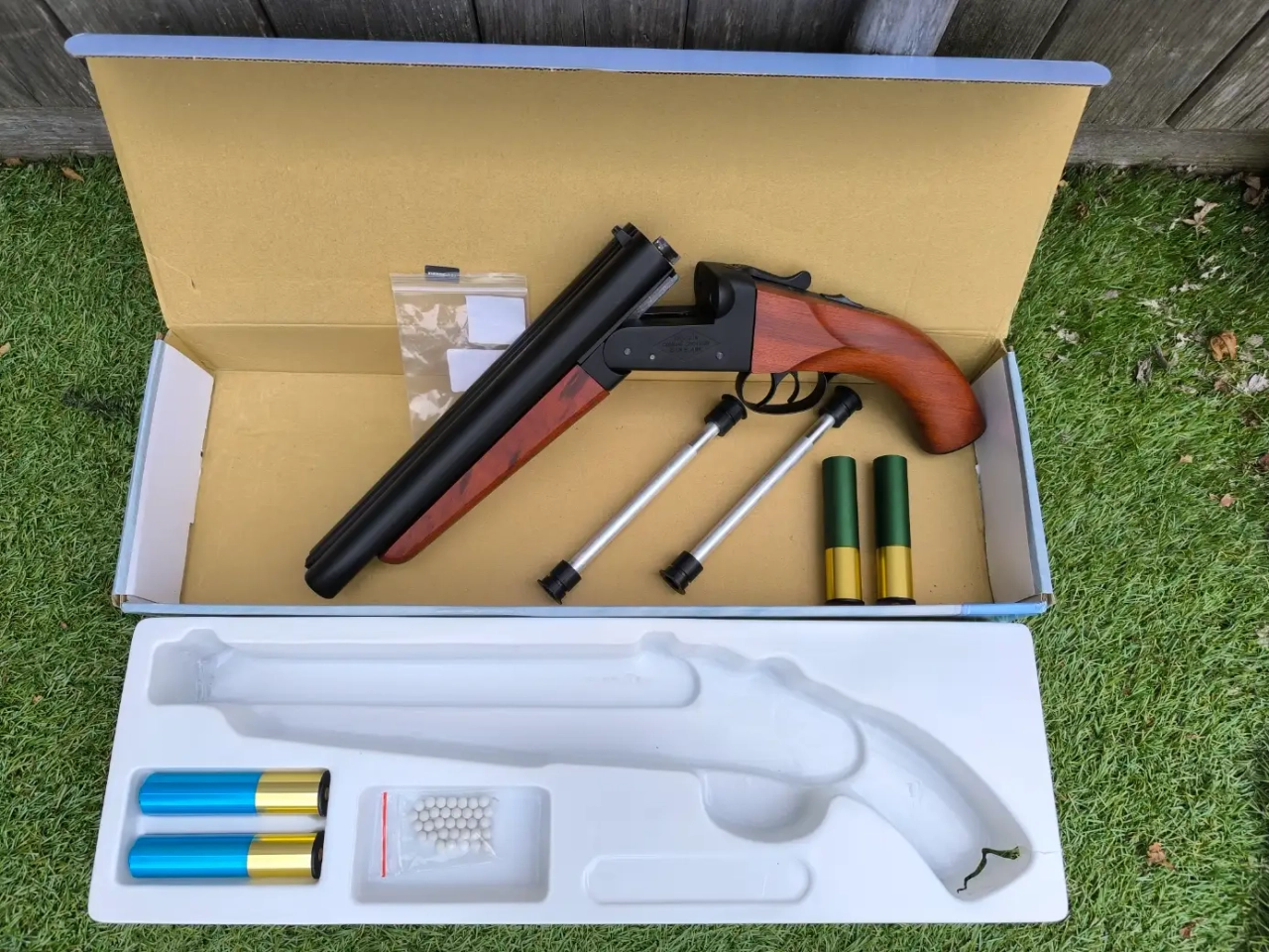 Vends double barrel Farsan neuf. Il est modifié pour tirer des cartouches de 24 billes au lieu de 6. Toutes les pièces pour le remettre d'origine sont fournies avec.