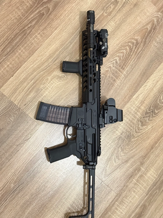 Vendu avec upgrade joint, canon, changement de sélecteur de tir, crosse sig Toxicant, poignée pistolet magpul moe k2+ soft touch, ressort culasse upgrade, nozzle guns modify