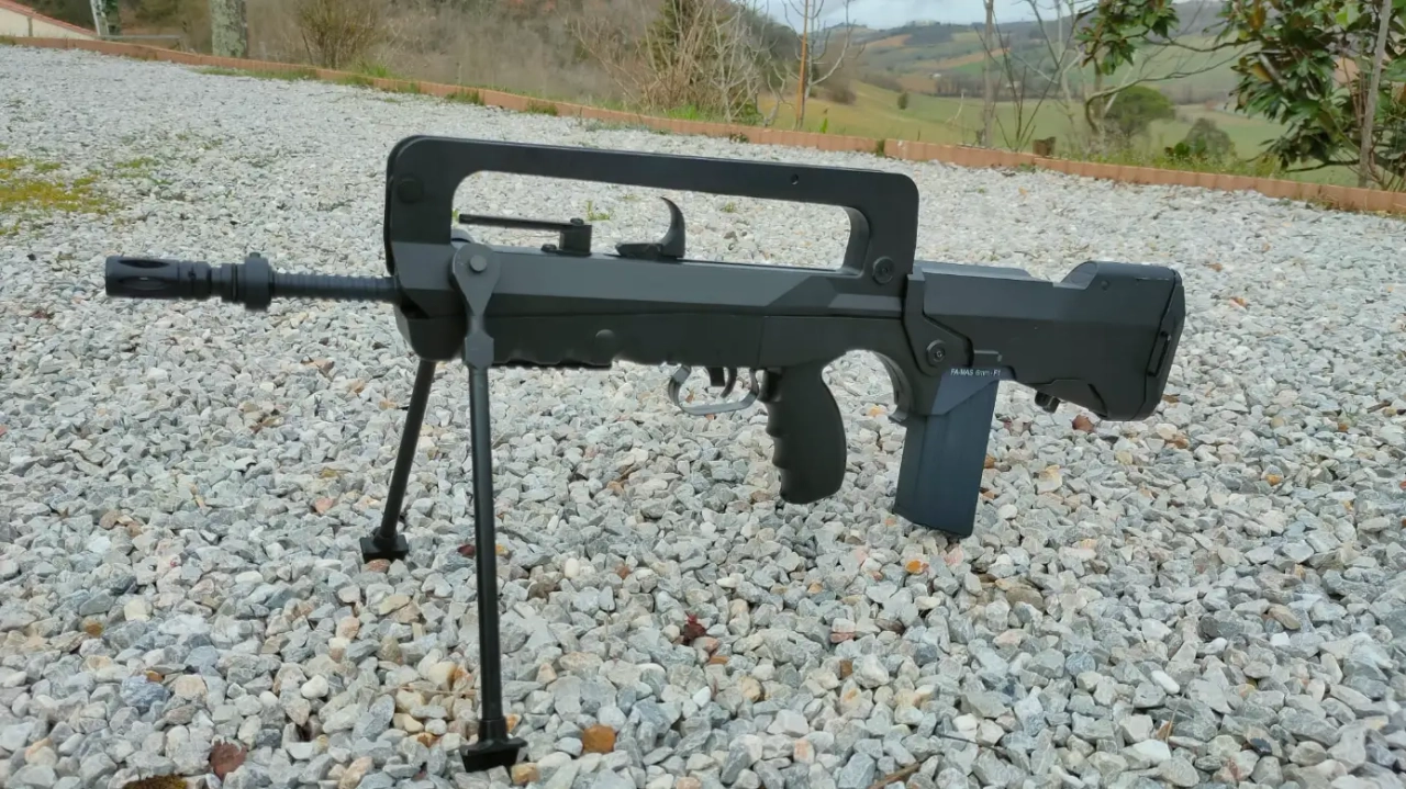 Famas F1 Cybergun entièrement d’origine, seule modification : connectique batterie en T-Dean.