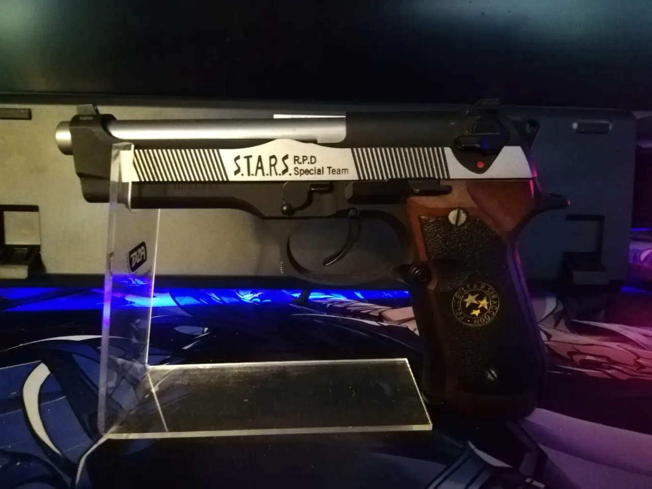 Réplique Résident Evil M92 Samurai Edge en parfaite état,acheter Neuf. Il n'a jamais servis. Juste éxposer en vitrine. Vendu avec sa boite.