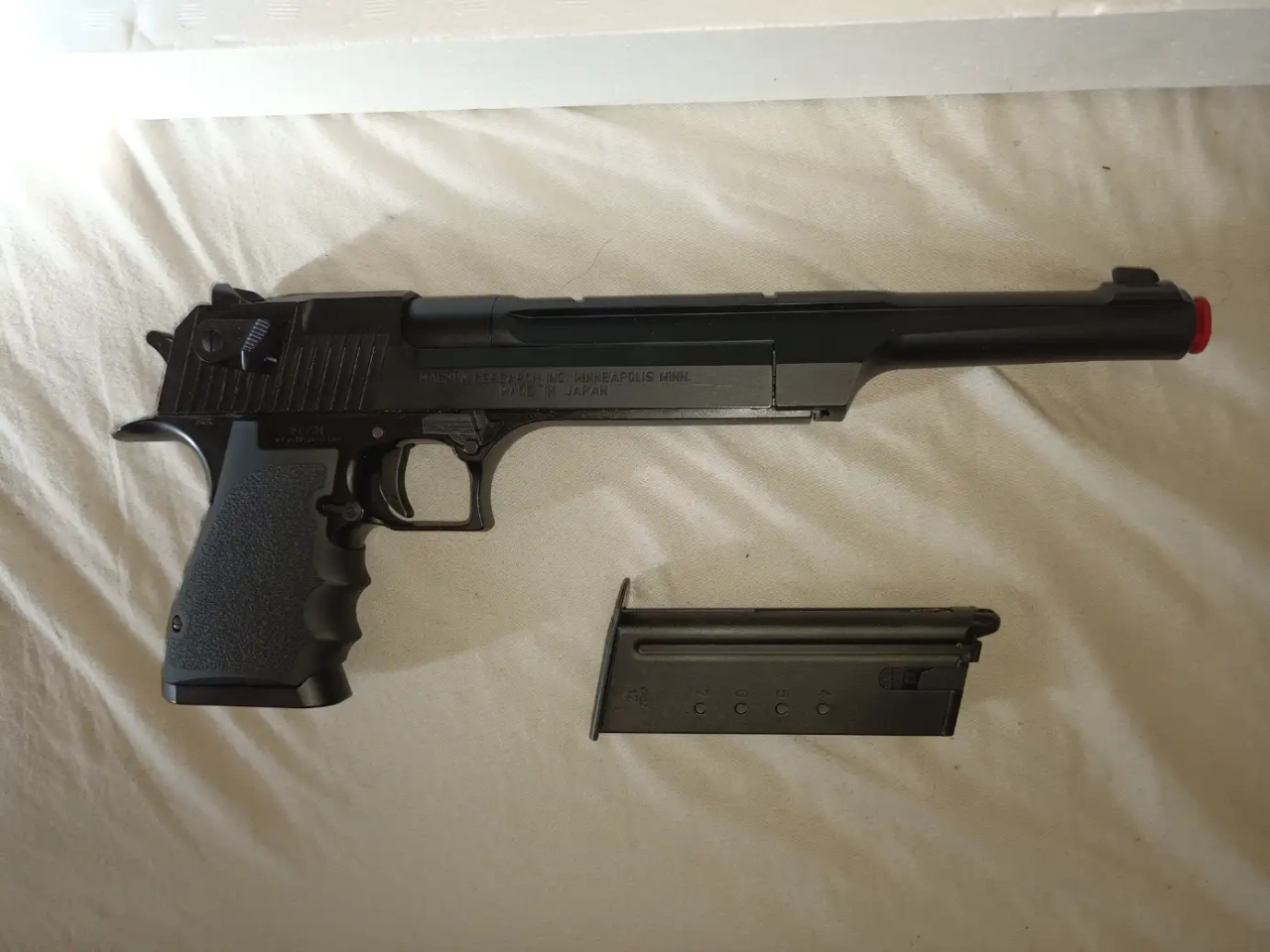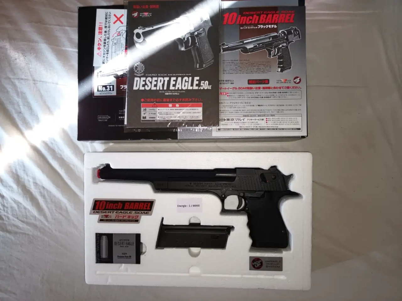 Vends tokyo marui desert eagle 10inch , très peu servi , une dizaine de billes tirées avec , très légère traces d'usures du à son utilisation . Aucune fuites du chargeur . D'autres photos sur demandes . Le prix est de 140euros . Livarison au frais de l'acheteur avec mondial relay ou colissimo . Paiement via paypal .