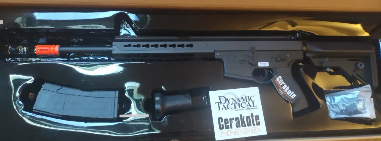 Les séries DYTAC Warlord M4 se caractérisent par l'emploi d'un upper monolithique Keymod en aluminium du plus bel effet, la partie basse ou "lower" est réalisée en ABS haute résistance. Coté interne on retrouve une gearbox renforcée sur bearings 8mm et un canon 6.01mm de série.